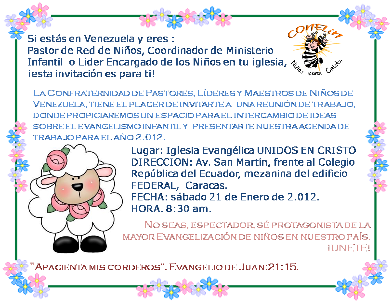 La predica de la palabra y hablar de tu fe con un amigo son dos de los tipos mas comunes de invitacion verbal usados para invitar a otros a una comunidad de fe. Phoenix az cada ultimo jueves del mes se les celebra un culto especial para. Gran jornada de entrenamiento y taller para maestros lideres y servidores a la ninez bogota el proximo sabado 30 de marzo no te lo pierdas. Tendremos a disposicion un bus que recorrera las calles de lebu para traer a los ninos mas pequenos hasta la iglesia y despues de terminadas sus clases dejarlos en el mismo lugar donde tomaron el bus.