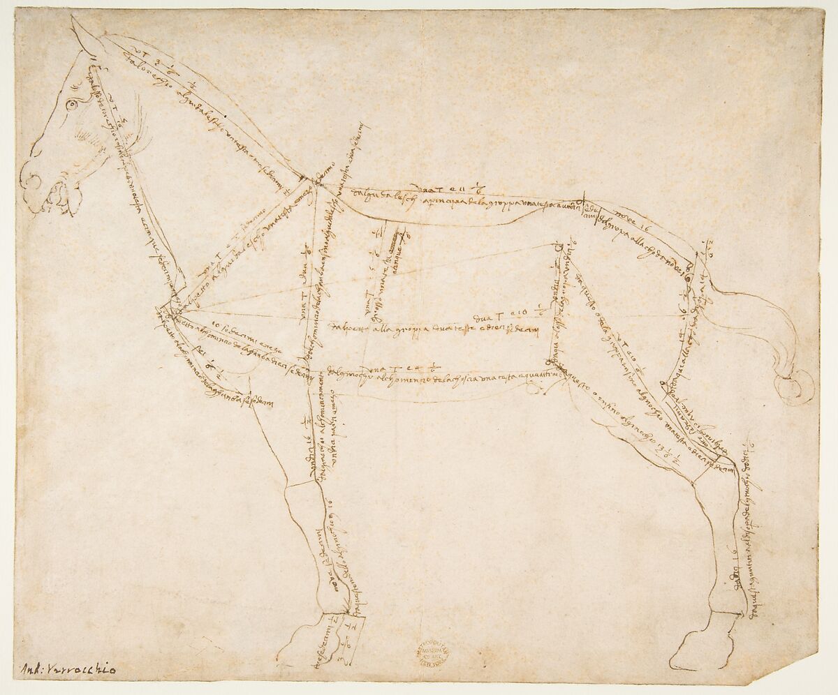 Andrea Del Verrocchio Measured Drawing Of A Horse Facing Left