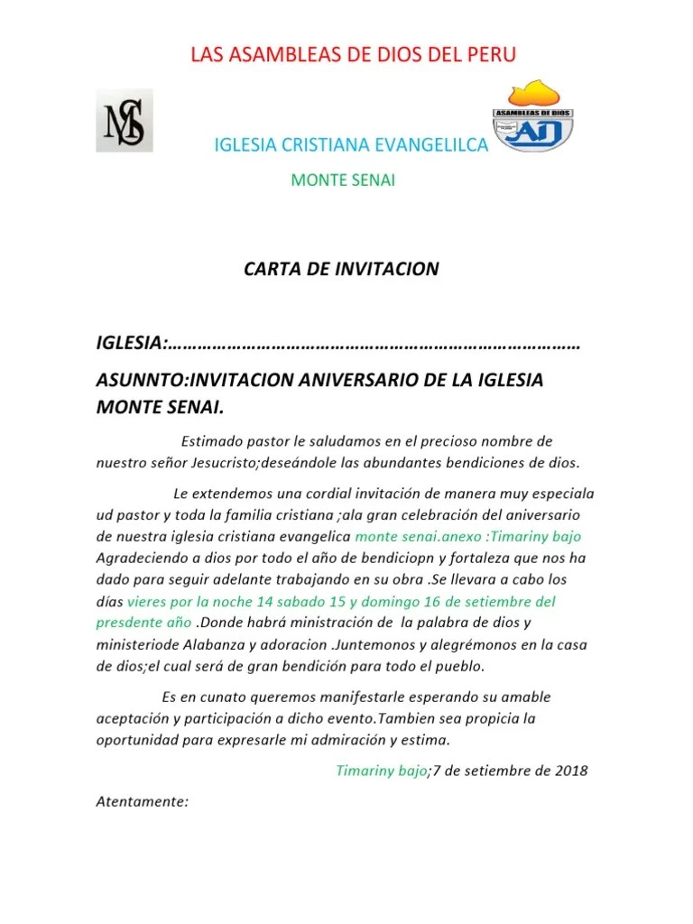 Modelo de carta de invitacion para aniversario de iglesia cristiana. Carta y permiso retiro 2012. Discover ideas about invitaciones de aniversario invitacion para aniversario de iglesia cristiana imagui invitaciones de aniversario modelos de invitaciones iglesia cristiana gracia aniversarios cristianos tarjetas. Si tienes miembros de la comunidad que podrian beneficiarse de ir a tu evento una carta de invitacion dirigida a ellos es una buena manera de hacer que se sientan bienvenidos en tu iglesia y promocionen tu evento. Si tu iglesia planea celebrar su aniversario puedes personalizar las invitaciones y ahorrar dinero disenandolas tu mismo.