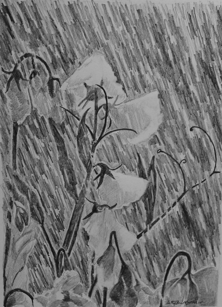 Sweet Peas In The Rain Pencil Drawing Cathy Burkinshaw Flickr