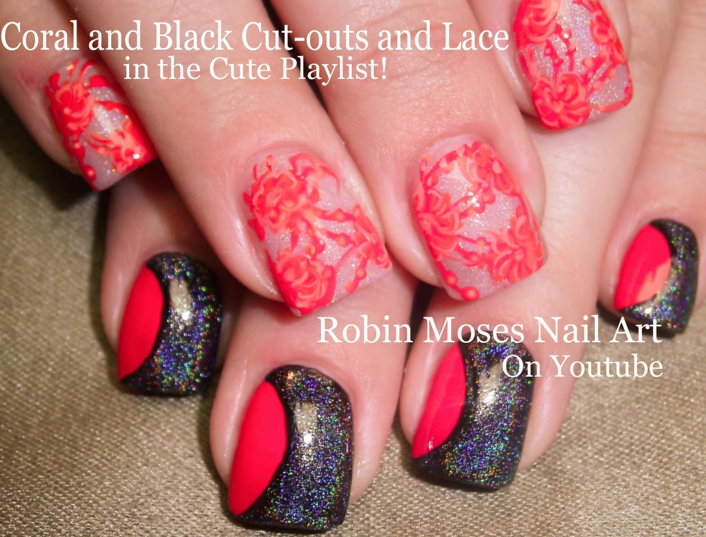 Nail Art By Robin Moses Spring Coral Color Blocking Lace And