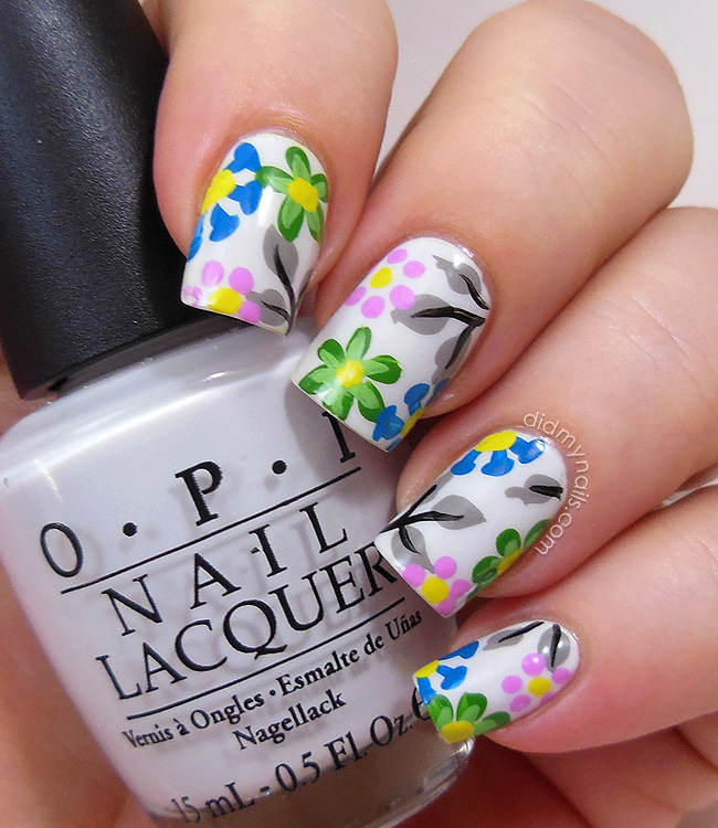 Did My Nails Bright Flower Nail Art On White