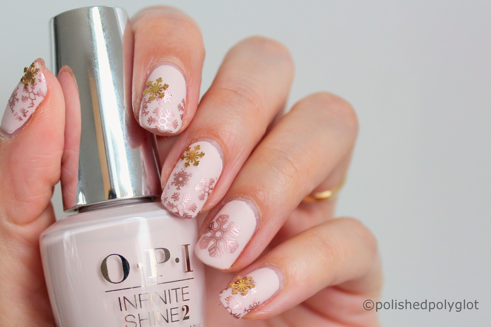 Nail Art Pink And Rose Gold Snowflakes Nail Design Using