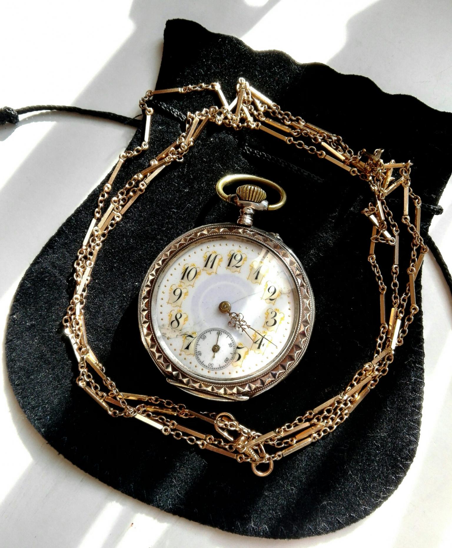 Gravierte Taschenuhr Mit Kette Remontoir Cylindre 10 Rubis